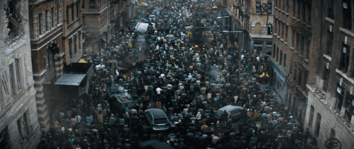 片中有场戏是好意思军诈欺爆炸引走怪物后,稠密市民拖着大包小包围挤在沿途避祸。