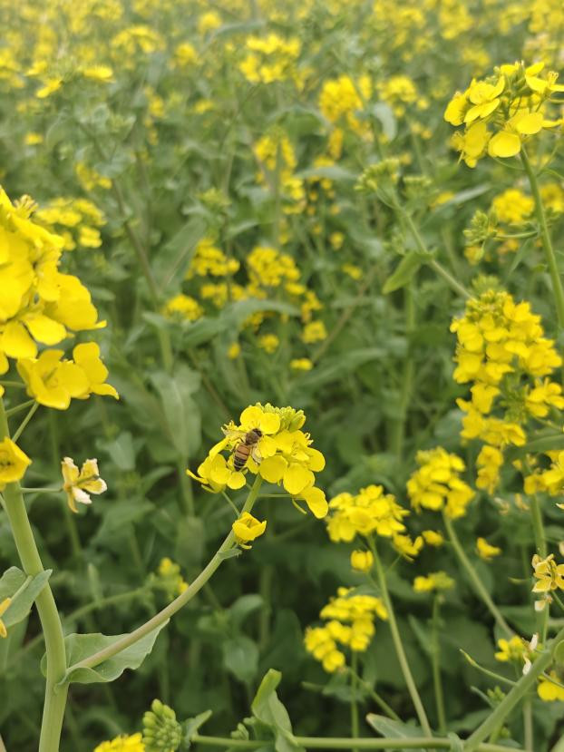 那片金色的油菜花海便泛起眷注的海浪,重重叠叠