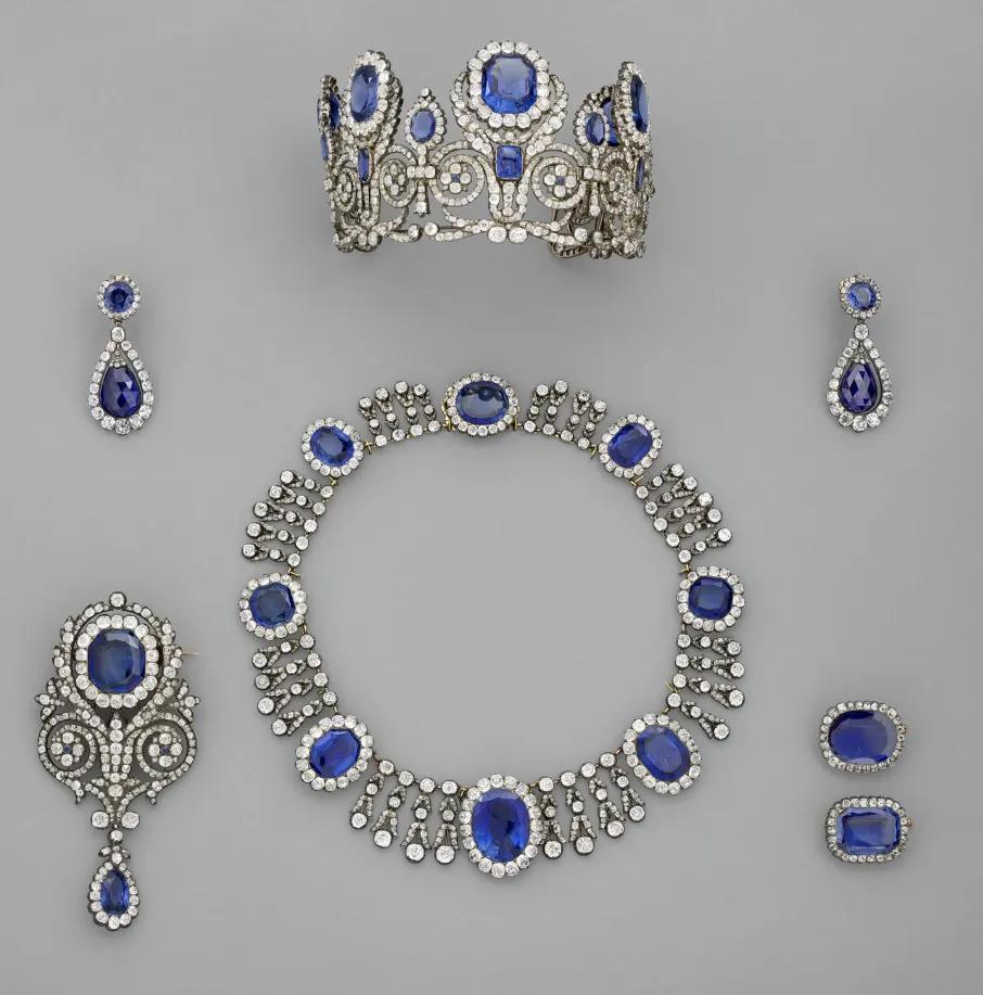 △玛丽-阿梅莉王后与奥尔唐斯王后的冠冕、蓝对持项链及蓝对持耳饰(贵寓图)